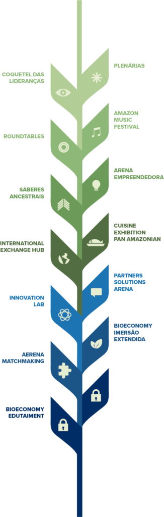 O principal propósito do evento é promover e desenvolver o ecossistema de inovação em bioeconomia, ancorado na ciência e nos saberes tradicionais, colocando o empreendedor amazônico no centro e criando um ambiente robusto de aprendizagem, conexões, geração de negócios, ciência e tecnologia, inclusão social, valorização da cultura e projeção internacional.