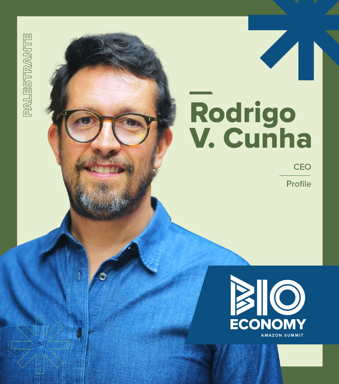 Rodrigo V Cunha é fundador e CEO da Profile, uma agência de comunicação e consultoria de sustentabilidade que conta histórias de marcas e pessoas que trabalham com sustentabilidade, impacto positivo e projetos regenerativos. Rodrigo é organizador licenciado e curador do TEDxAmazônia e autor do livro Humanos de Negócios, projeto que conta histórias de homens e mulheres que estão (re)humanizando o capitalismo.