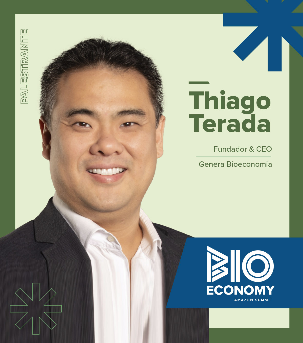 Thiago Terada é fundador e CEO da Genera Bioeconomia, empresa focada em escalar a restauração produtiva na Amazônia por meio de Sistemas Agroflorestais. Com mais de 12 anos de atuação na Amazônia, construiu carreira executiva estruturando cadeias da sóciobiodiversidade em comunidades para o setor químico. Foi Presidente da Águas de Manaus, acumulando experiência em concessões nos estados do Amazonas, Pará e Mato Grosso. É graduado em Relações Internacionais (PUC-SP), com MBAs em Administração e Estratégia (FGV/SP) e Sustentabilidade e Negócios Globais (Università Cattolica del Sacro Cuore, Milão).